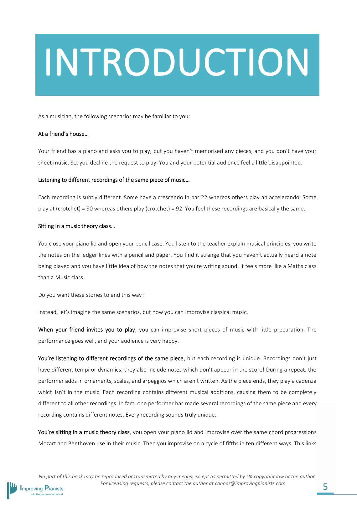 In order to combat this, I have published ‘Partimento: A Beginner Method for Classical Improvisation’. This eBook teaches the reader improvisation through updating the method of Partimento for the modern student.